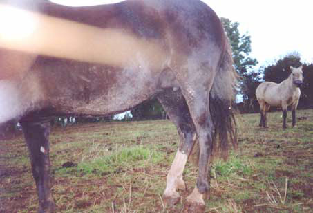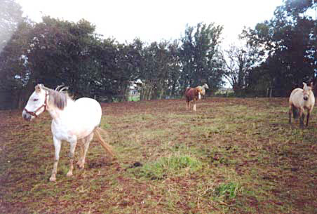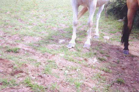 The mare with the twisted leg at Linton Ridge. She had finally had some corrective trimming of her hoof, although our vet predicts that arthritis will have set in by now.The mares had to try and pick food out of the mud and muck on the ground.
