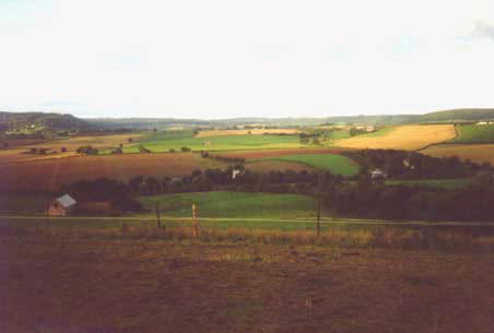 View from the muddy field at Linton Ridge, which is between the Black Mountains and the Malverns, to which the animals were moved following the inspection by Barry Stone. The wind was blowing from the hills in the distance and there was no shelter when the wind was in this direction. The mares on Linton Ridge. Some had milk in. The trees in the background provided no shelter on that day due to the wind and rain direction.