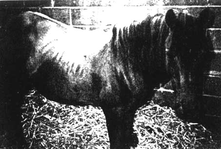 The stallion in the pen at O'Gradys's. This is a copy of a photocopy of the original photo which will be available later. Previous Page