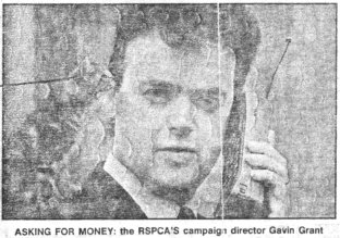 JOIN THE RSPCA (if you are allowed in) ANIMAL ABUSERS NOT NECESSARILY REJECTED HAVE THE EXPERIENCE OF A LIFETIME ++ UNBELIEVABLE ++ BETTER FUN THAN THE WAR GAMES Work hard for animals - raise a lot of money - be honest and enthusiastic AND become a target for disciplinary action. Give 30 years of your life to the RSPCA and then get expelled. Witness the incredible disciplinary "trials" - see the Council in action. Observe fellow members reduced to tears by the injustice of their treatment. |