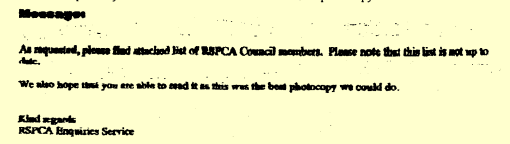 "As requested, please find attached list of RSPCA Council members. Please note that this list is not up to date.